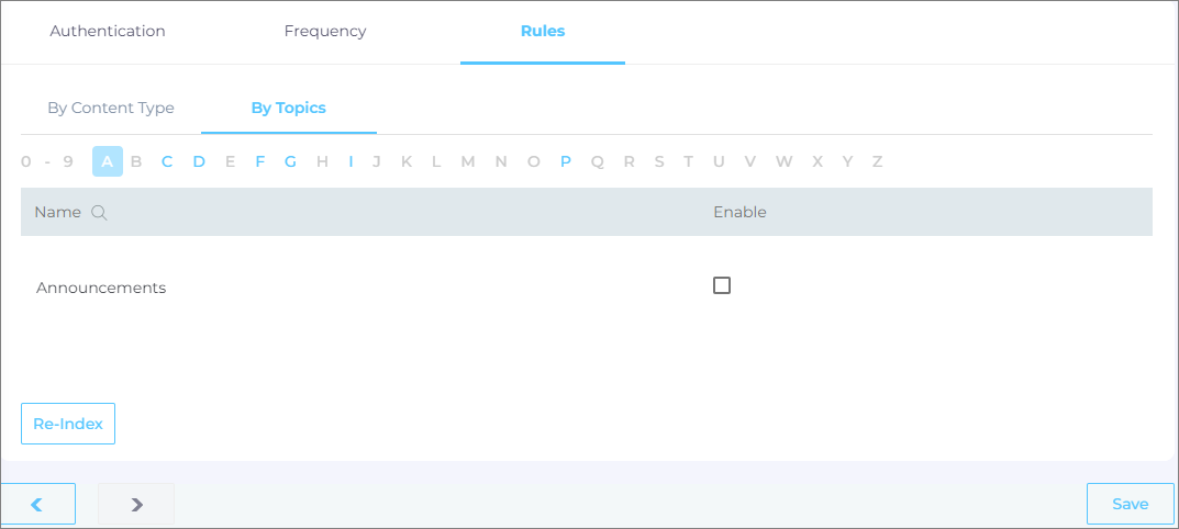 When Hours is selected, a new dropdown is displayed where the admin can choose between eight values between 1, 2, 3, 4, 6, 8, 12, and 24. Selecting 8 initiates content crawling every 8 hours.