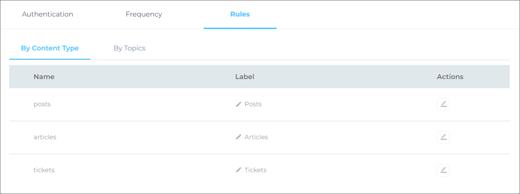 - Under the Rules tab, you will land on By Content Type subtab. You can see the list of supported content types here.