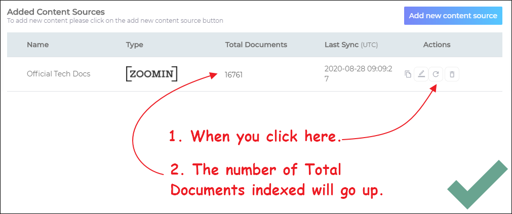 But if the number remains zero, then either the Zoomin website has no docs or something went wrong during the configuration. In this particular case, you can recheck the website address.