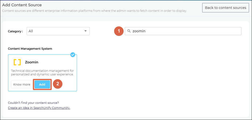 Transform the documentation stored on Zoomin into searchable, actionable information with a dedicated content source. This article walks you through the steps of creating a SearchUnify data repository (content source) from Zoomin.