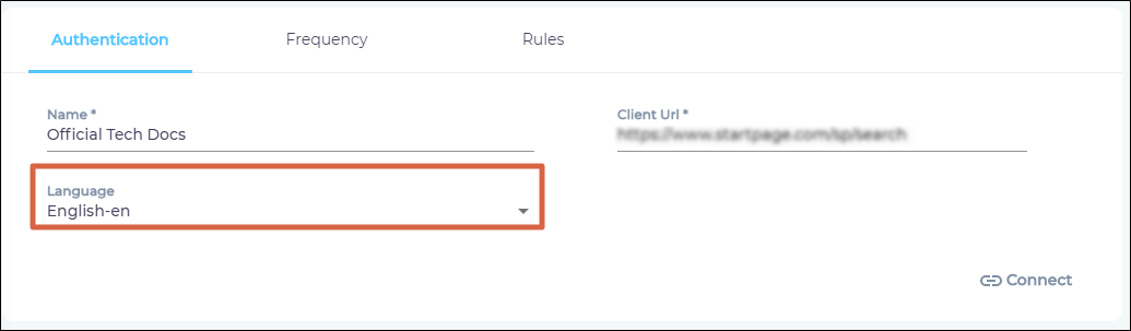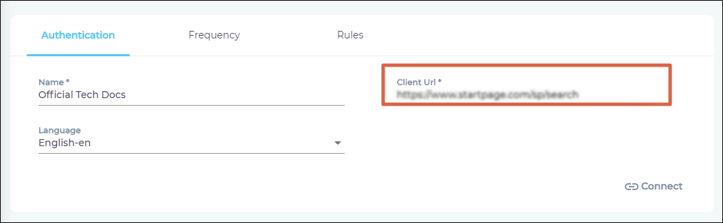 When the Connect button is displayed if the Content Source authentication is successful. Along with the button, a message is displayed There are no crawl errors and the Content Source authentication is valid.