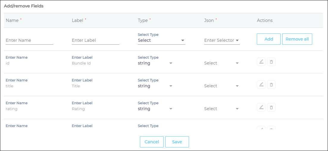 Now, choose either "All" or a specific content source field from the "Enter Name" dropdown. When "All" is selected, any value in the "Find" column is replaced with the corresponding value in the "Replace" column across all content source fields. If a particular field is chosen, the old value is replaced with the new value solely within the selected field.