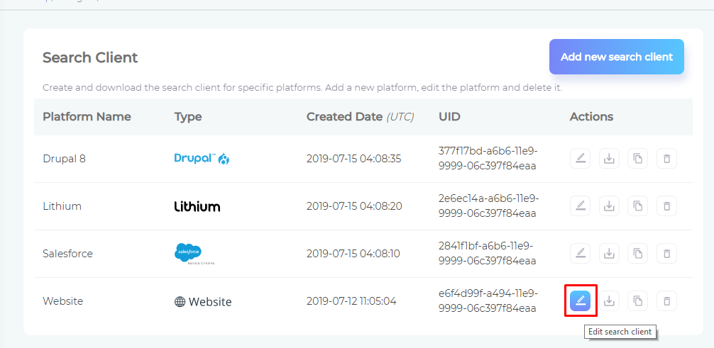 - Open Search Clients from the left navigation bar.