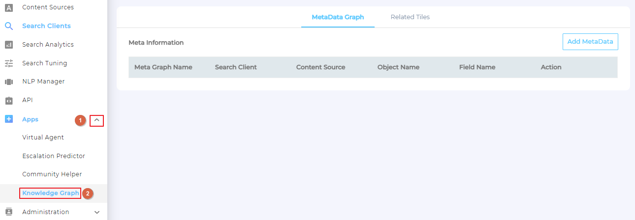 Once Knowledge Graph has been activated, you can move on to Set up MetaData Graph and Set up Related Tiles.