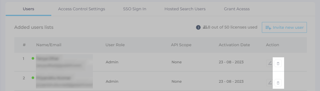 An Admin can revoke a user's access to a SearchUnify instance by deleting that user.