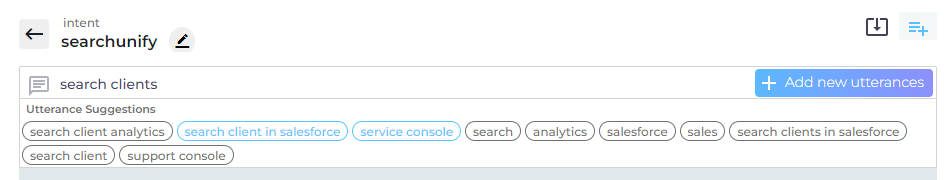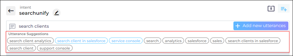 When editing an existing intent, NLP Manager can suggest additional utterances.