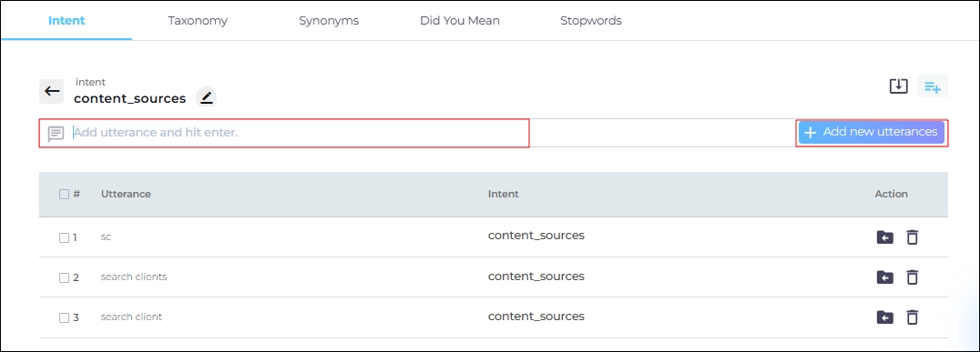 Enter an utterance in the text box and click Add New Utterances to save it.