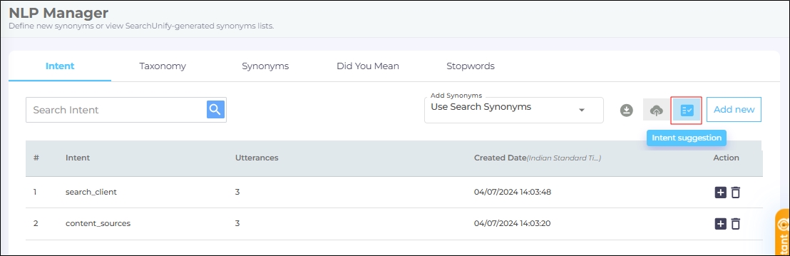 Admins can use Intent Suggestions to get AI-powered recommendations for adding new intents and utterances or enhancing existing ones. NLP Manager can suggest up to 30 utterances per intent.