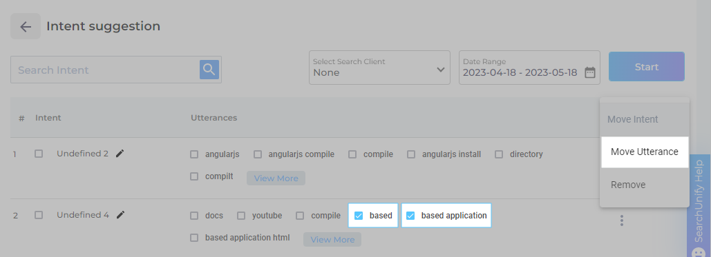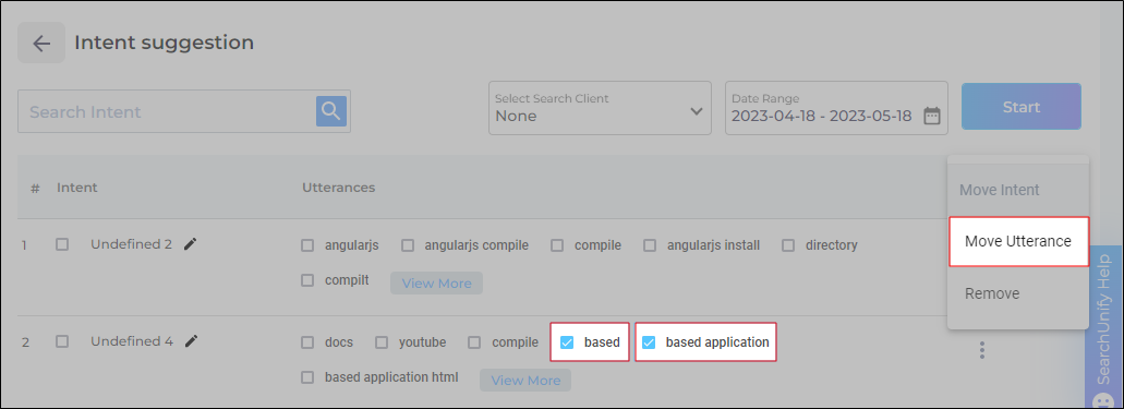 With Smart Suggestions, user search queries are analyzed and grouped into intents and utterances. By incorporating these results into the search algorithm, admins can configure responses to match user intent rather than relying solely on keywords. The trained data for intents can also be extended to Intent Tuning for further refinement.