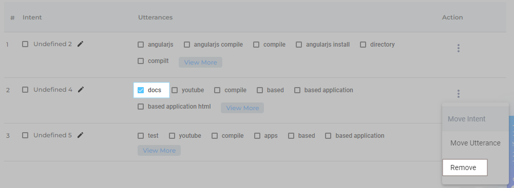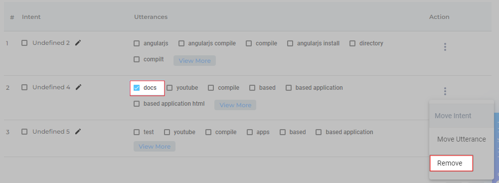 Click on the intent to which you want to add utterances. Alternatively, you can use