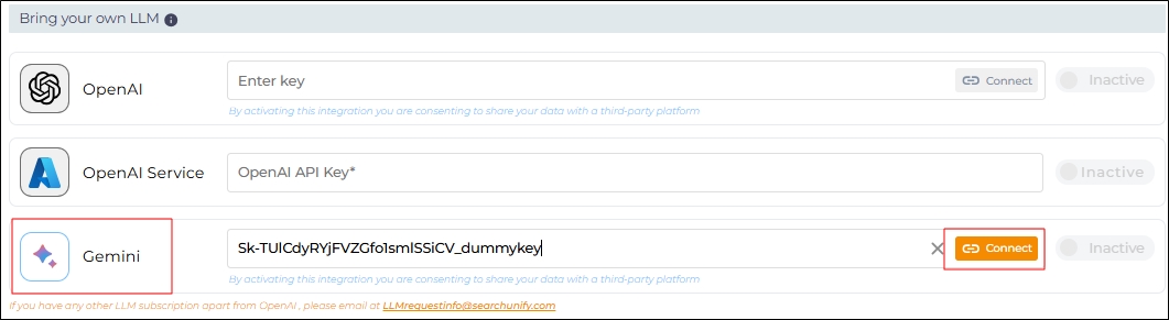 Fig. A snapshot of ‘Gemini’ in LLM Integrations.