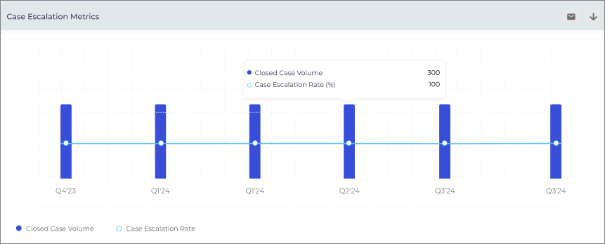 Escalated Cases – The total number of escalated cases, along with the Escalation Percentage, calculated as: