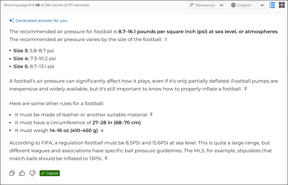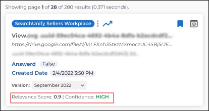 Relevancy Score: A measure of how relevant a search result is to the query. It is represented as a number between 0 and 1, where: