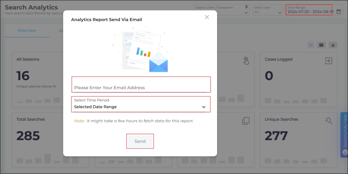 Fig. A snapshot of the Analytics Report Send via Email dialog.