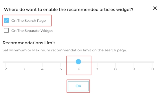 In the Search Clients > Edit > Configurations > Recommendations > Configurations, the admins can select a Recommendations Limit. The selected number is the maximum number of recommendations that will be shown on the search results page.