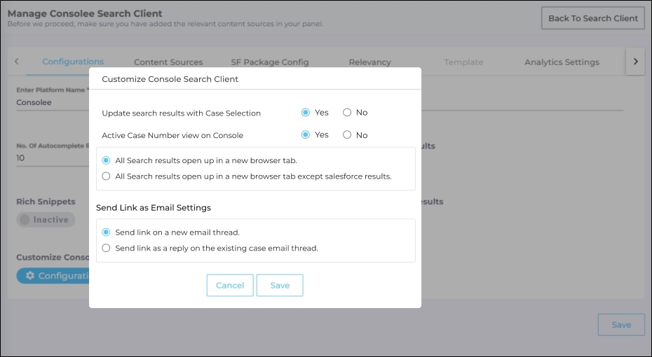 Salesforce Console Search Client – The Save Results and Save Searches in Bookmarks features have been ported to the Salesforce Console search clients. Earlier, they worked on all other search clients except Salesforce Console.