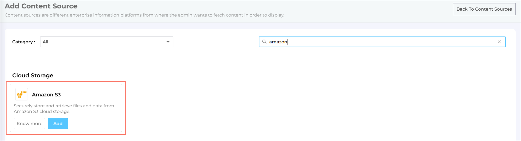 SearchUnify now supports Amazon Simple Storage Service (S3) as a Content Source. Amazon S3 is a robust and widely-used cloud storage service that allows companies to store and retrieve large volumes of data. With this integration, the SearchUnify admins can index content from their S3 buckets and make the data searchable for end-users.