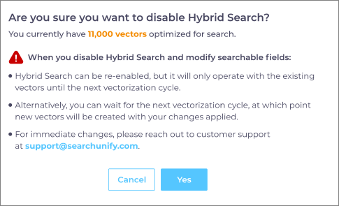 Fig. A warning about re-vectorization when Hybrid Search is disabled.