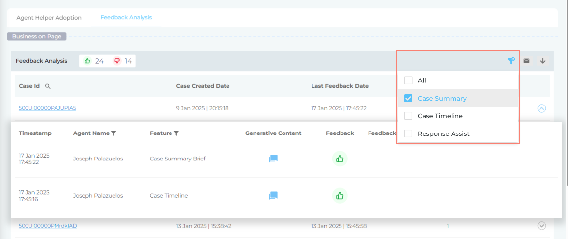 Admins can now filter the Feedback Analysis report by feature to focus on the most relevant insights.