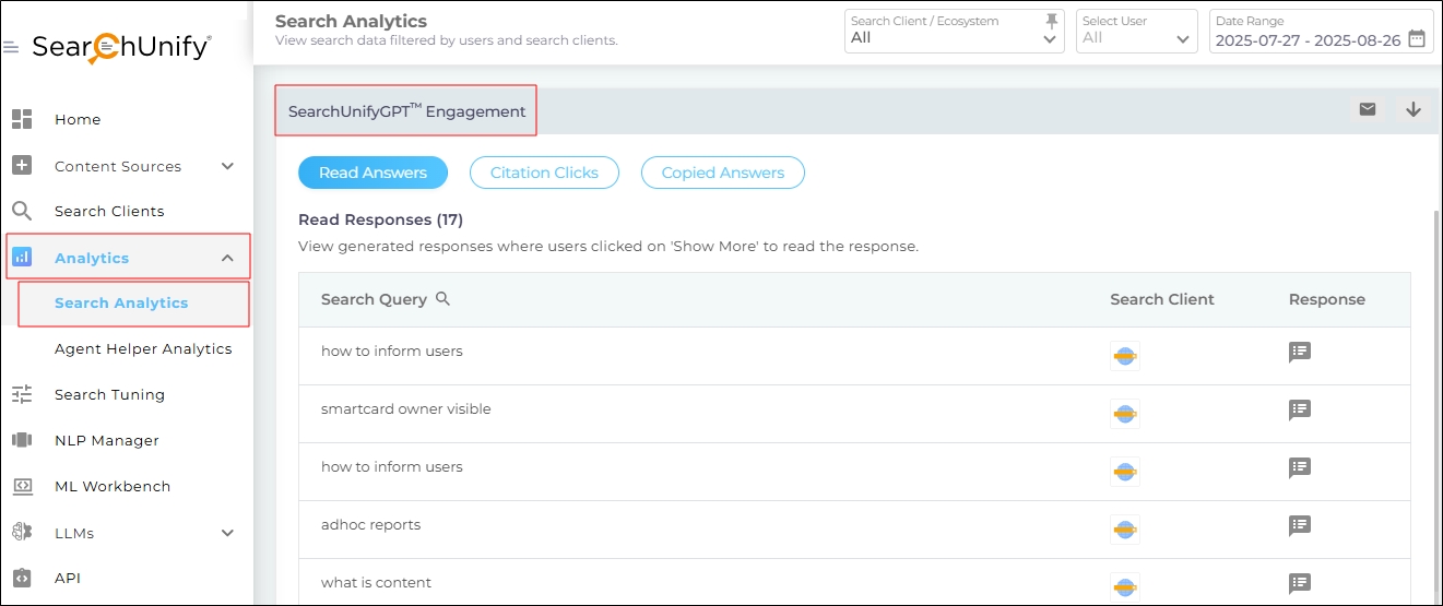 View User Interaction with SearchUnifyGPT™ Engagement Report