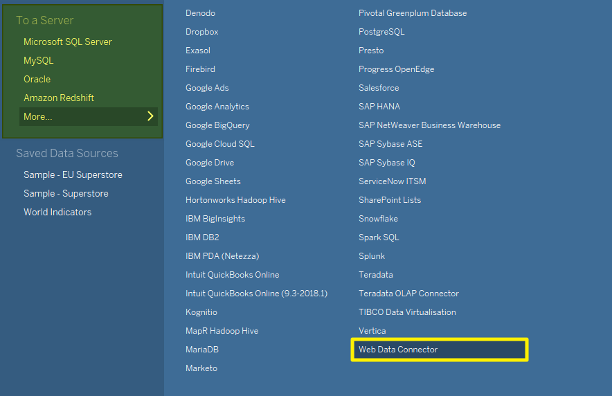 - Open Web Data Connector from the To a Server menu.