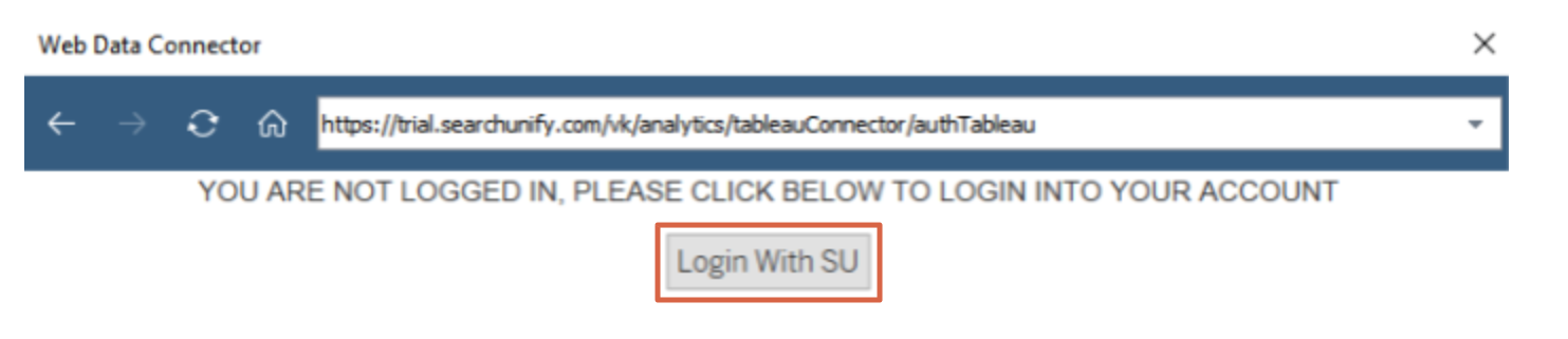 https://{{base URL}}/analytics/tableauConnector/authTableau. - You will be prompted to sign in. Select Login With SU.