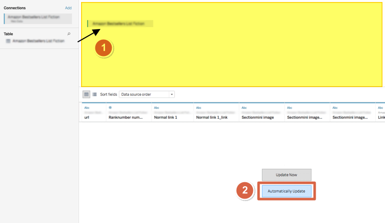 - Drag fields from the left column to the highlighted area at the top and select Automatically Update.