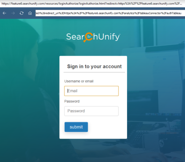 - Enter your SearchUnify login ID and password, then click Submit.