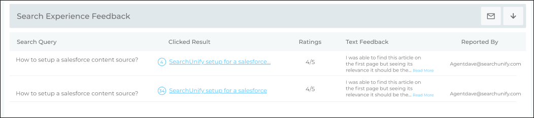 to share it. The people whom you share the report with receive the email with the subject "SearchUnify: Search Experience Feedback Report"