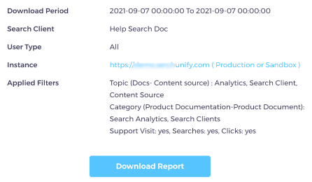 - Download and Share an Analytics Report. Download reports for offline analysis or share with someone who doesn't have access to your SearchUnify instance.