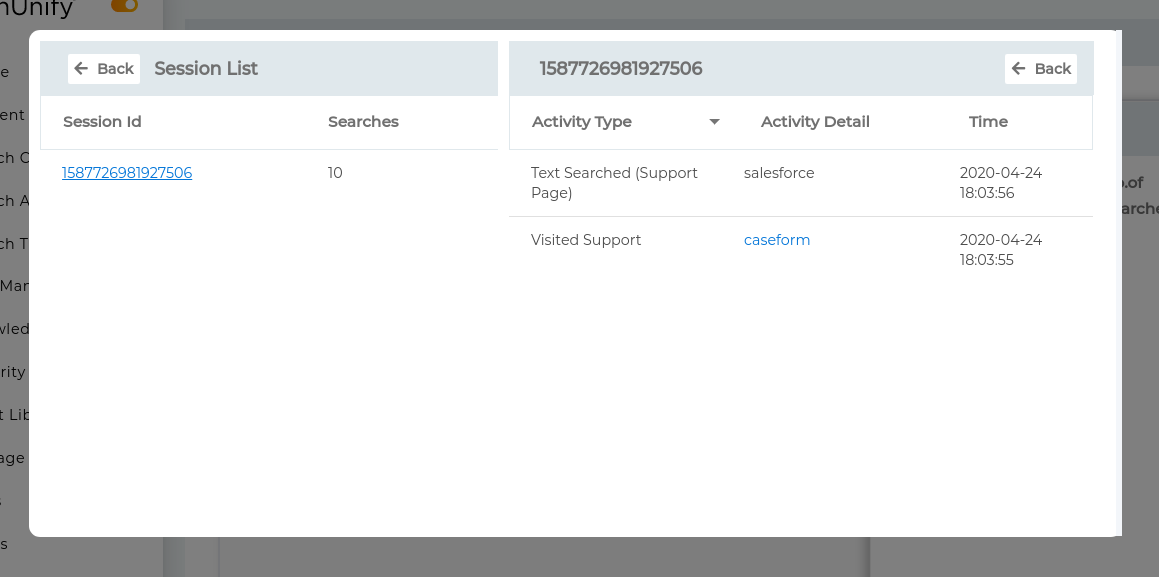 To find out how exactly a user journeyed from consulting an article to creating a case, you can click a session ID.