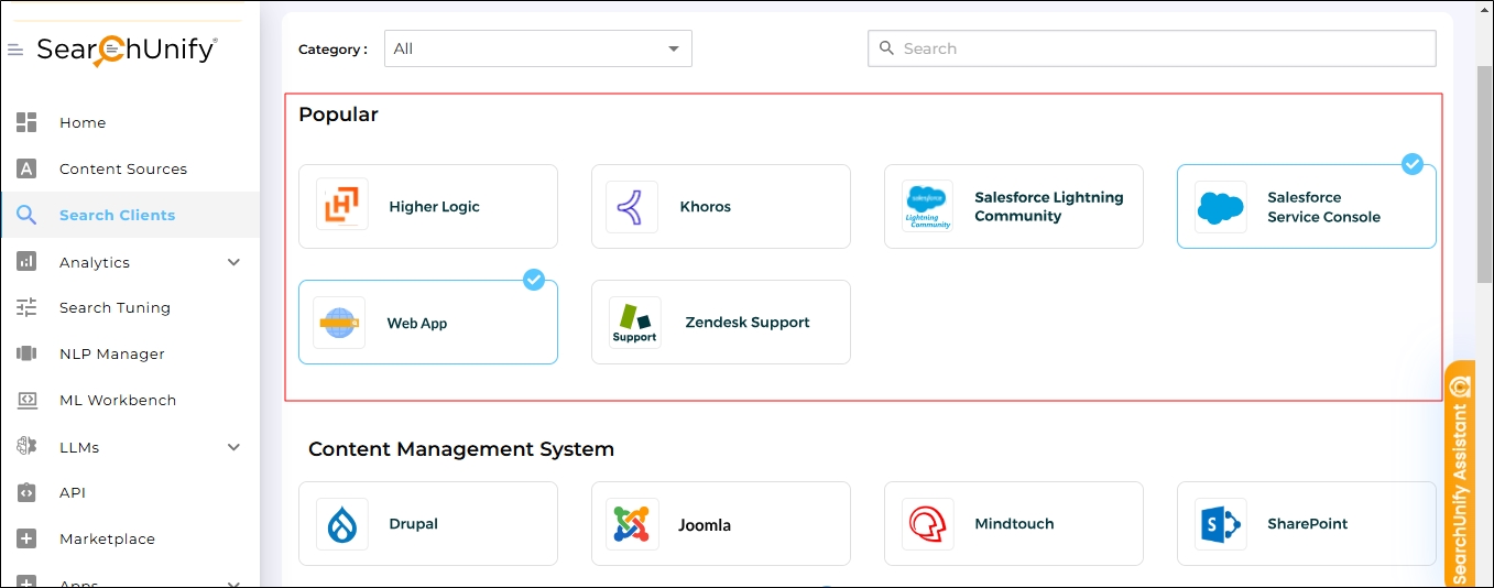 By default, All is selected in the category section but you can select a particular category according to your requirement or directly search your desired search client using the search bar.