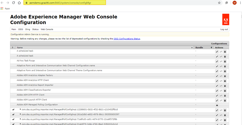- Open Adobe Experience Manager Web Console Configuration. A quick way to access the page is to append