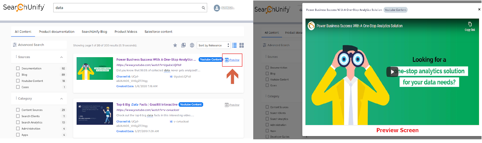 Note: For more information, see the “Preview” section in Configure Content Sources Linked to a Search Client.