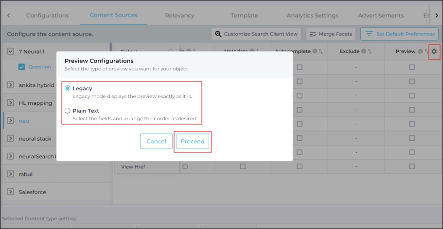 In the Preview Configurations, select Legacy or Plain Text. If you have selected Plain Text, then move to the next section to configure it.