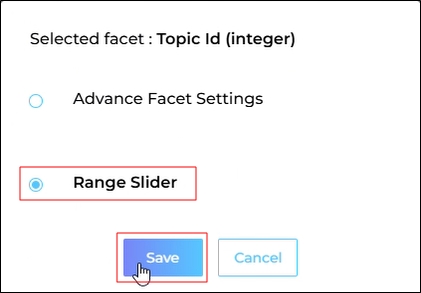 Range Slider - This slider can be configured to enable users to filter results across a number or date range. For example, the users can limit results to those published between February and October, or ticket IDs between 1000 and 2000. If a query returns a large number of results, users can define the maximum and minimum values within a range to display only the results that fall within that specified range.