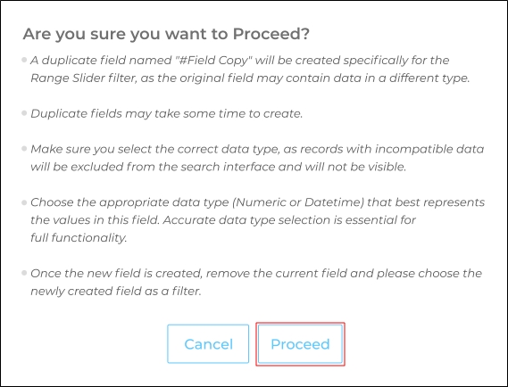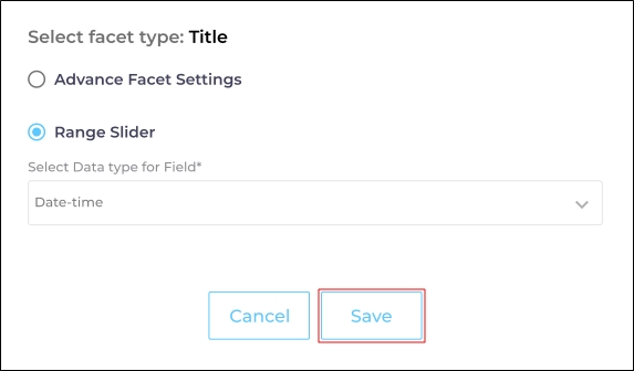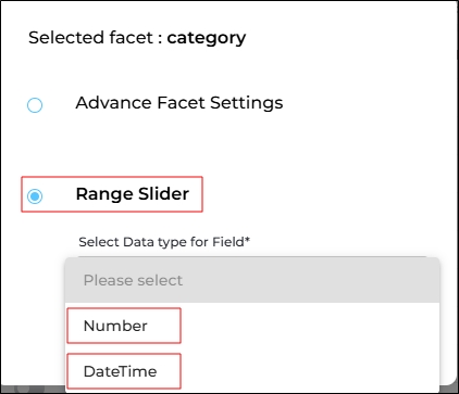 Select the Range Slider option and specify the type of data stored in the field. Two options are available: