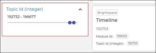 Save the settings. A range filter based on Topic Id is displayed on your Search Client, with minimum and maximum values automatically determined by the data in the field.