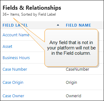 The first column, Field, lists all the content fields. The number of fields in a content source depends on two factors: