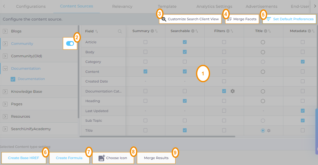 Content Sources offers several of settings to customize search results. Click on a highlighted setting to view its documentation.