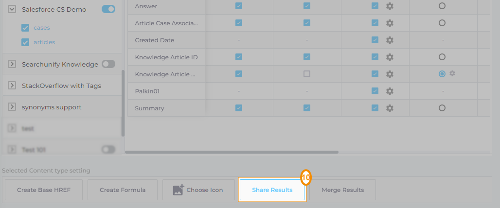 You will encounter a tenth feature on Salesforce Console search clients. The feature is named Share Results.