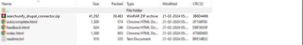 Open the downloaded Drupal 7 search client file and extract the searchunify_drupal_connector.zip file.