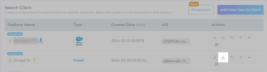After adding a Drupal Search Client, Download the search client.