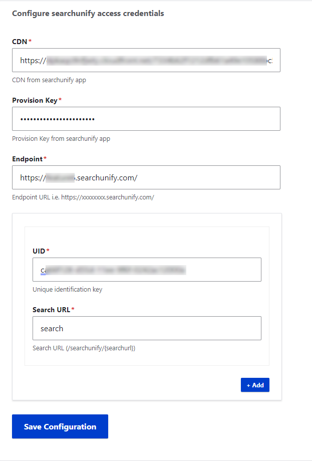 - Provision key; contact a SearchUnify representative to obtain it