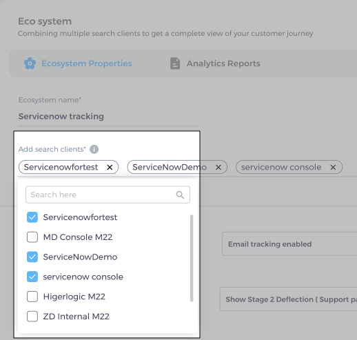 From Add Search Clients, select two or more search clients to be part of the ecosystem.