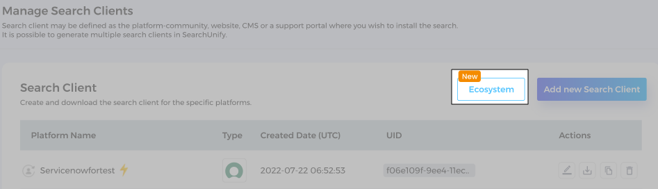 Go to Search Clients > Ecosystem.