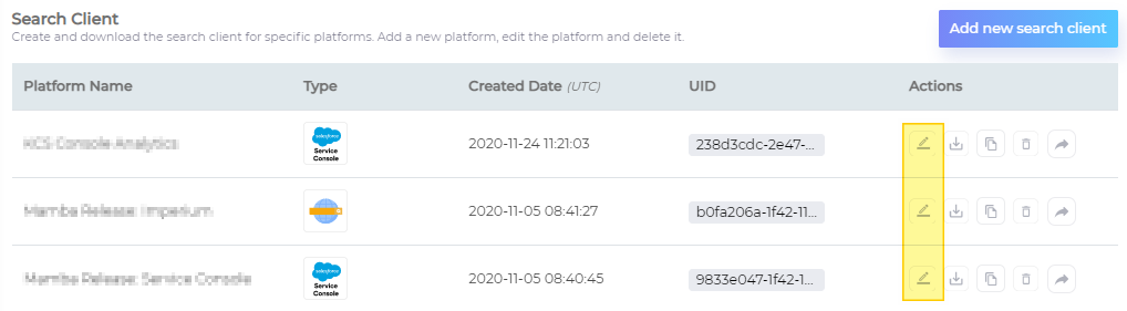 Edit Search Client Configurations