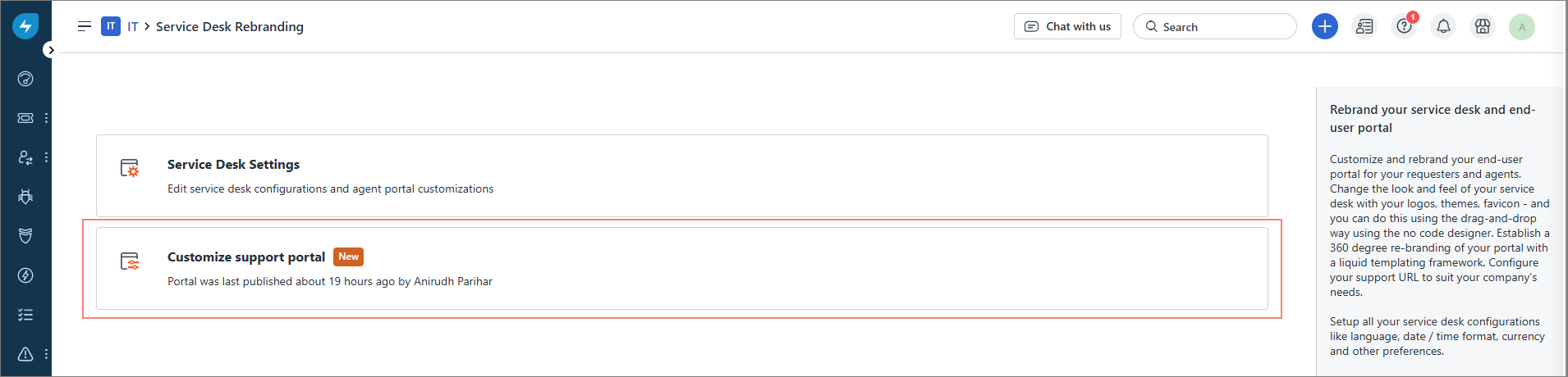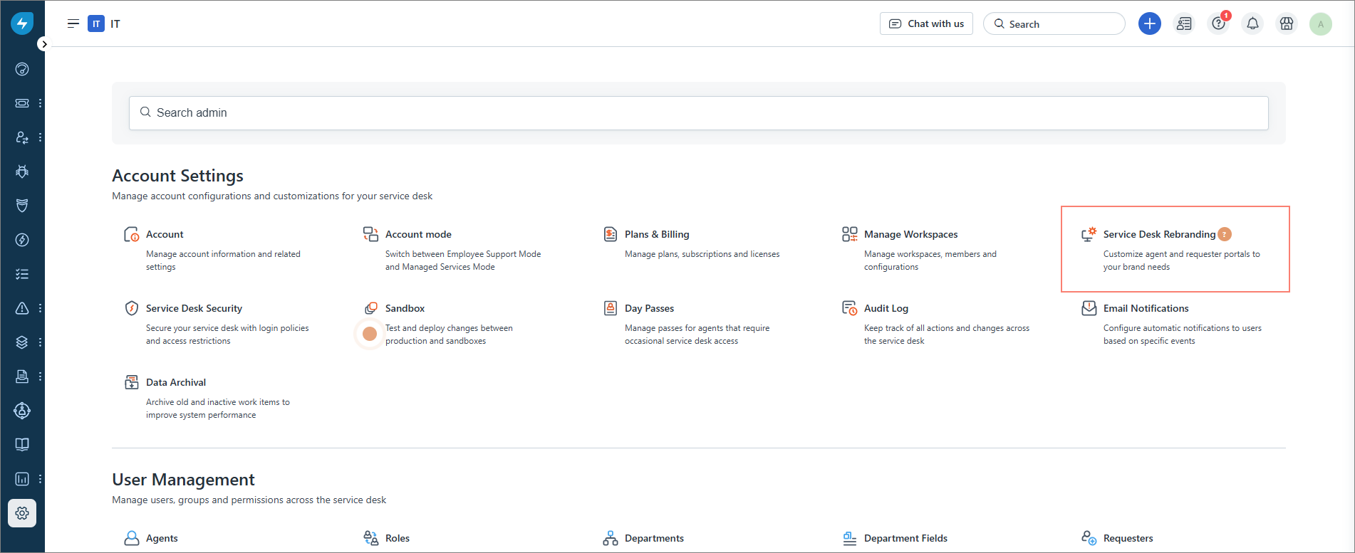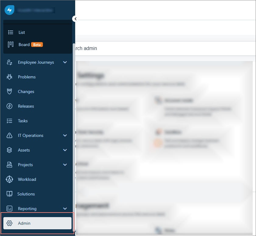 On the Admin page, select Service Desk Rebranding.