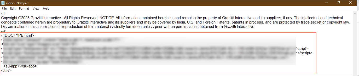 Open the index.html file (using Notepad or any similar text editor) and copy the script provided in the file.