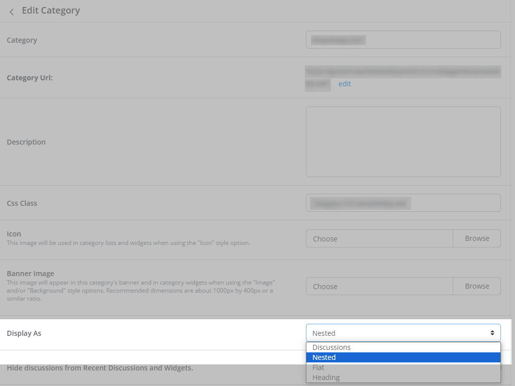 Either create a new category or select an existing category, where you want to deploy the search client. Make sure that the Display As for the selected category is set to Nested.